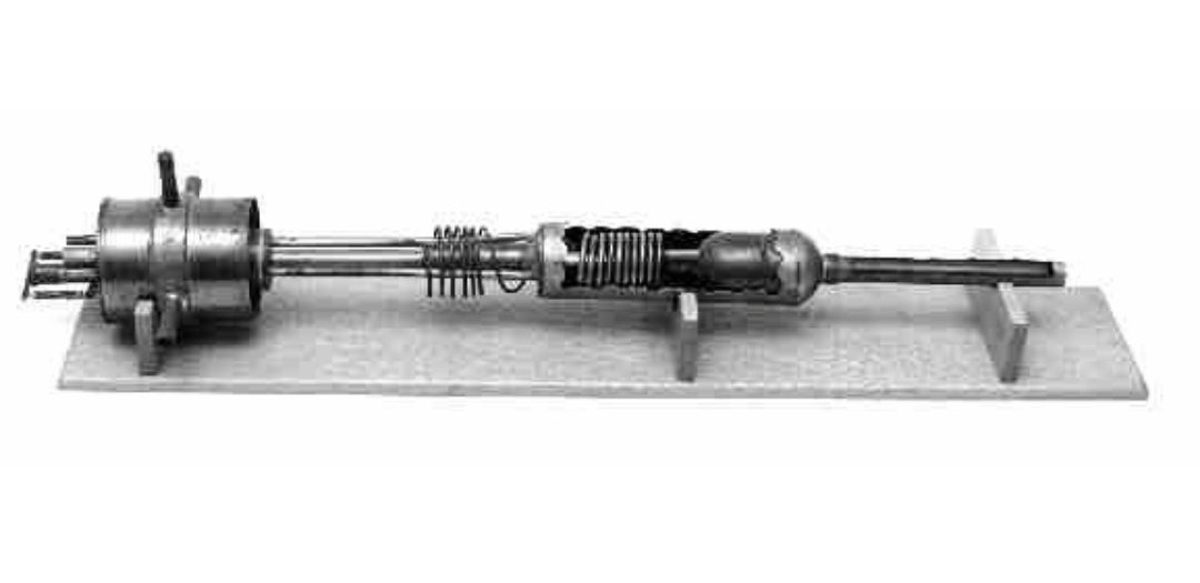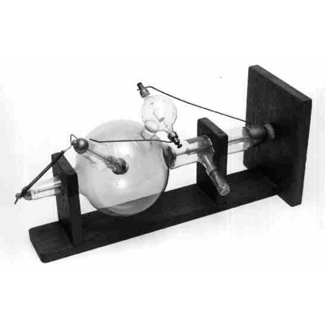 The archive is also home to a glass torus made in 1938 for James Tuck (now deceased) by glassblower A. (Willie) Leemans. Tuck was attempting to make a betatron, but the work was interrupted by the outbreak of the Second World War. He was very secretive about his work, and the purpose of the electrode structure revealed by an X-ray photograph is a mystery.