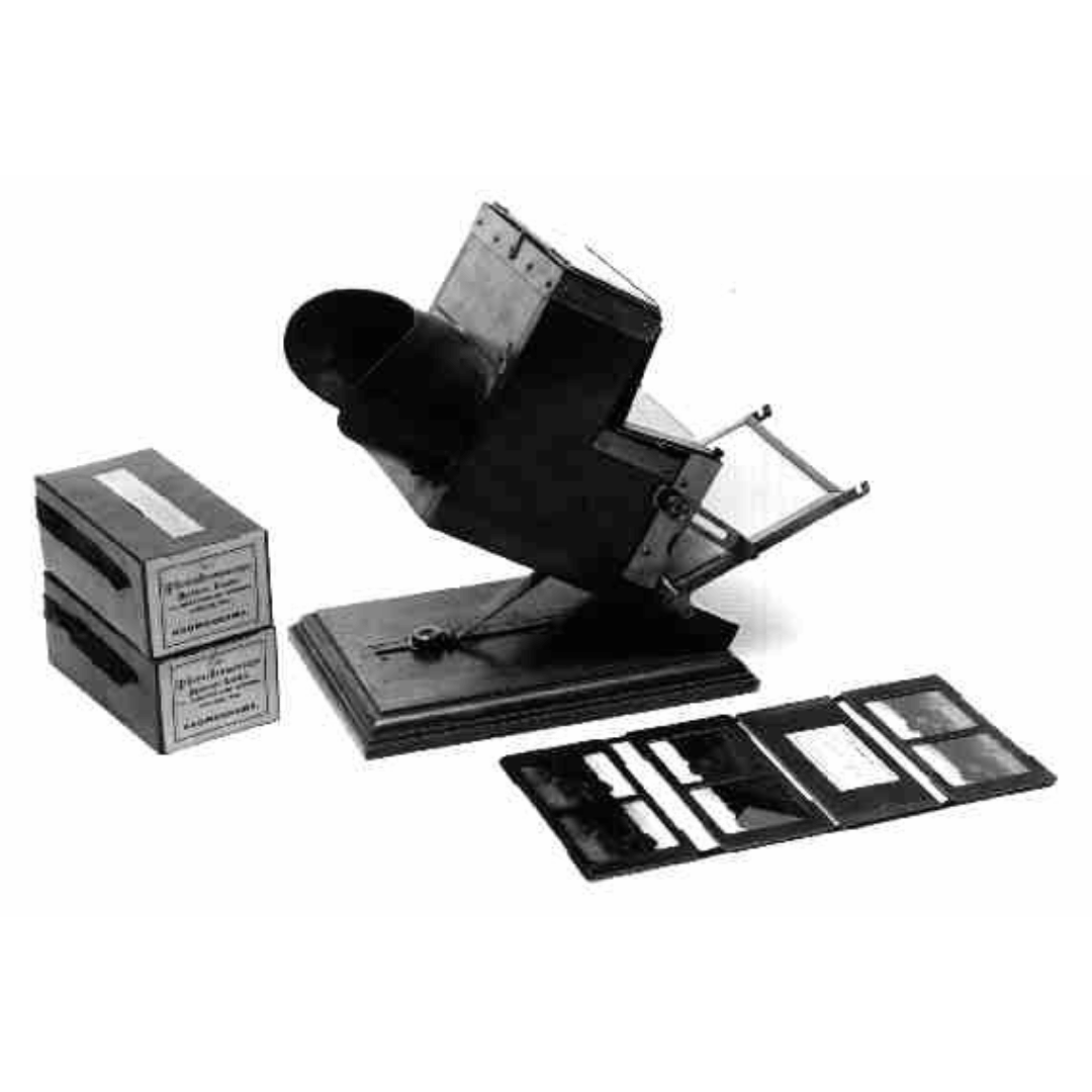 The Kromskop (image in gallery below) is an interesting novelty from 1893 for viewing stereoscopic colour photographs. An ingenious application of additive three-colour photography and stereoscopy. It is in display cabinet 4.