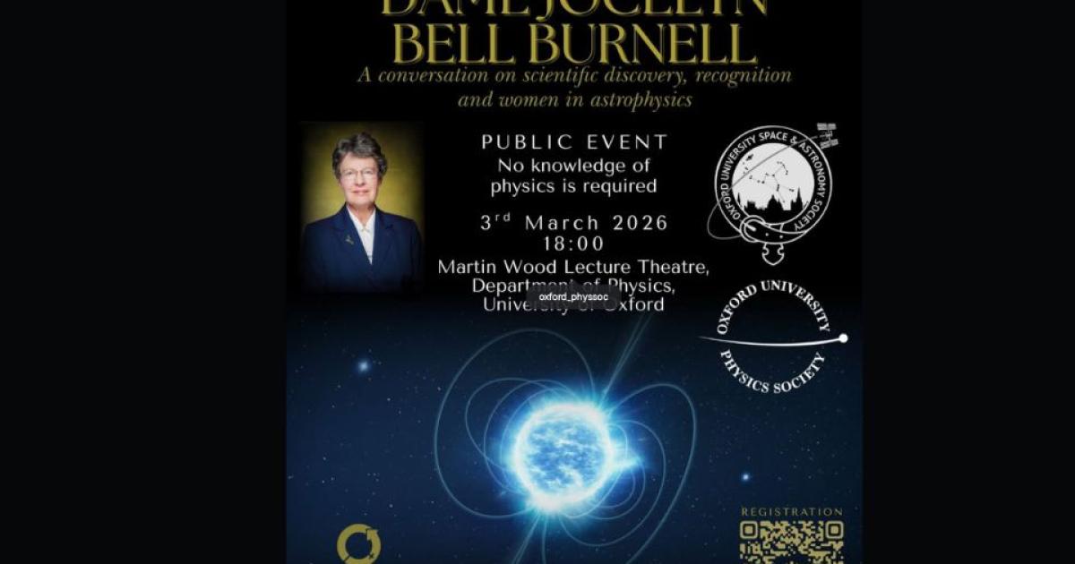 Oxford University Space and Astronomy Society and Oxford University Physics Society are delighted to host an evening with Dame Jocelyn Bell Burnell to mark International Women’s Day.