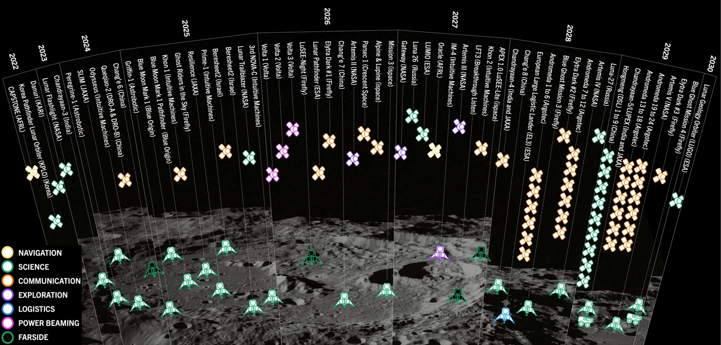 However, we are now on the cusp of a new era, with cost-effective and opportunity-laden access to space (including the lunar surface) becoming a reality. Such unfettered access will enable disparate groups to send instruments there, bringing about a transition from Earth-based observatories to space-based and cislunar telescopes (Fig. 1). Although this shift provides exciting opportunities for new science, it will also introduce sources of radio frequency interference (RFI) to the quietest remaining location to which we have access: the lunar Farside. Measurements from a generally RFI-free environment must be taken before the lunar skies have a multitude of orbiters.